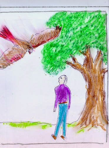 - he is at home with the trees (he finds sanctuary inside an ancient apple tree, and feeds on apples and nuts, and shamanizes among oaks and hazels and birches)
